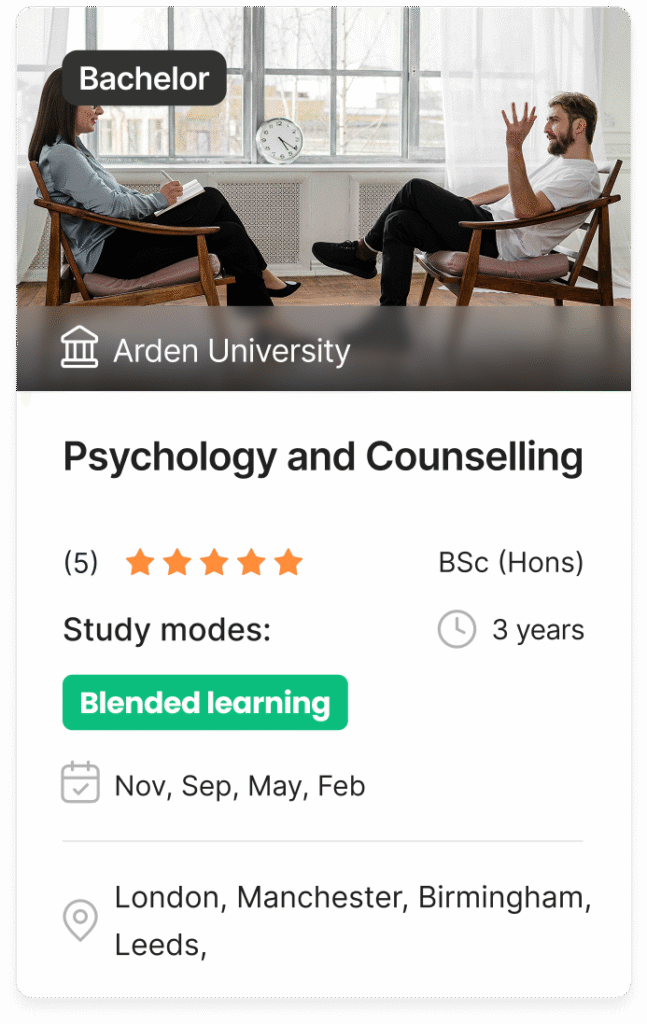 Learn flexibly through live or recorded lectures, interactive online classes and guided study. You can keep working while studying for your degree.